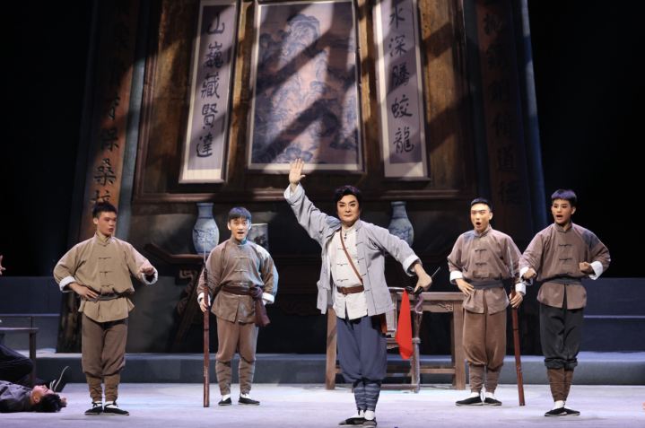“咚——”帷幕拉起,锣鼓点落。